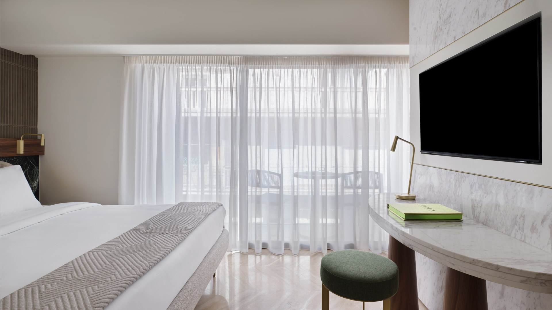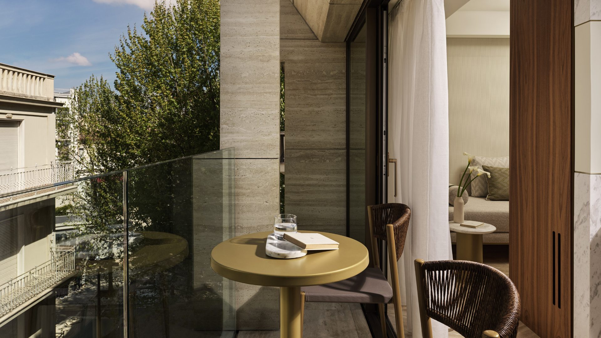 A SERENE SPACE THAT HARMONIZES SUBTLE REFINEMENT WITH THE PULSE OF THE CITY. THE BALCONY INVITES A PEACEFUL PAUSE ABOVE THE CITY’S VIBRANT ENERGY.