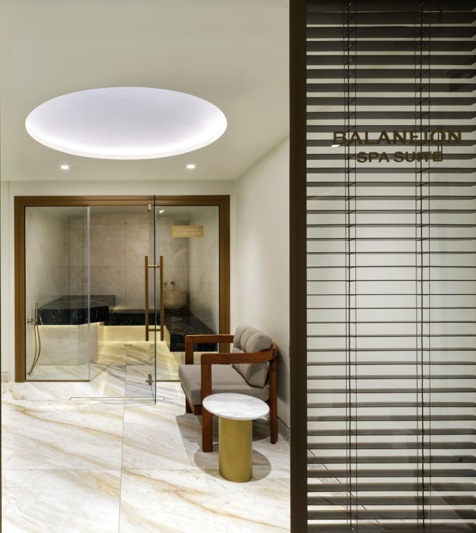 The Ancient Greeks were among the first to embrace the healing power of water. Τhey believed in the therapeutic properties of hot baths and mineral water. “Balaneion” the Greek word for bath, was also used to describe Roman baths, including the famous Roman Balneum near the Temple of Olympian Zeus. Our spa suite offers a private haven with a steam room, massage room, and a serene relaxation area, designed to refresh your body and soul.
